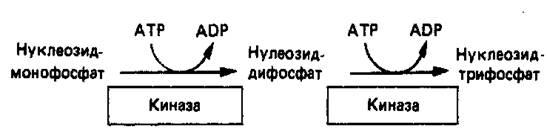 Реакции фосфорилирования нуклеозидмонофосфата и нуклеозиддифосфата.