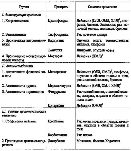 Таблица 1. Основные показания к применению ряда синтетических цитотоксических средств. 1