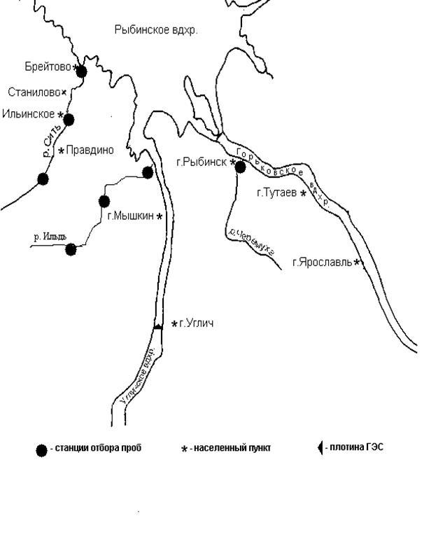 Канал на территории пос. Борок представляет собой искусственно выкопанный водоем, соединяющий один из корпусов института (ИБВВ им. И. Д. Папанина РАН) с водохранилищем. Его протяженность около 1 км. Все пруды рукотворные, выкопаны на территории садово-огороднических товариществ и близлежащих деревень. Характеристики изученных рукотворных водоемов приведены в таблице 1.