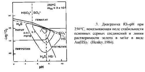 S отделяется в результате кипения. Однако изменение в бисульфидном равновесии, в результате образования других сульфидов, может быть также важным процессом: отсюда обычное нахождение золота в виде включений в сульфидах. Далее мы более подробно остановимся на этих процессах и их значении.