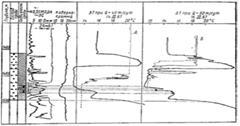 С учетом приведенной выше таблицы 7 и классификации форм дебитограмм можно определить примерные условия, при которых данные формы диаграмм встречаются. Если рассмотреть интервал глубин 1737–1783м, то можно предположить, что он характеризуется притоками нефти и нефти с водой значительной величины (более 20 м3