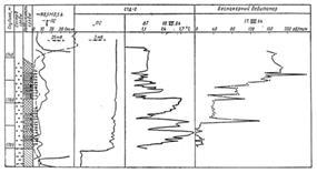 По кривой потенциал зонда можно выделить участок с высоким сопротивлением от 1737м до 1788м. Повышение сопротивления дает возможность предположить наличие коллектора с флюидом, у которого значение амплитуды кажущегося сопротивления резко возрастает.