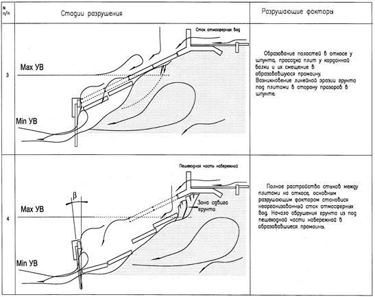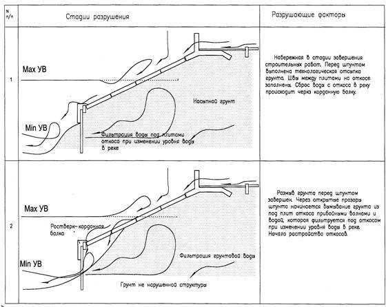 Таблица 1.1 Схема, поясняющая динамику разрушения откосной набережной р. Иртыш