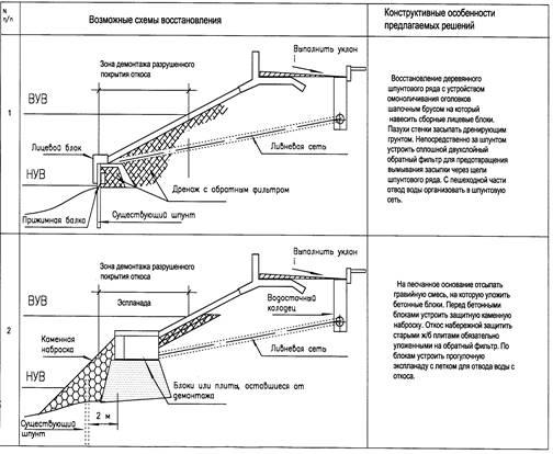 Таблица 1.3 - Возможные способы восстановления поврежденных участков Иртышской набережной на участке в районе дома № 23