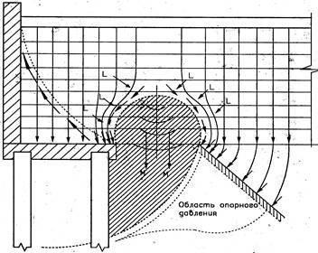 Рис. 2.3 Схема образования зон сдвижения грунтов над "низким" ростверком