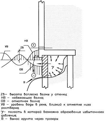 г) не удачно выбранная и принятая конструктивная схема, как шпунта, так и набережной в целом.