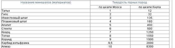 Таблица 1 - Сравнительная твердость различных минералов и материалов (по шкалам Мооса и Кнупа)