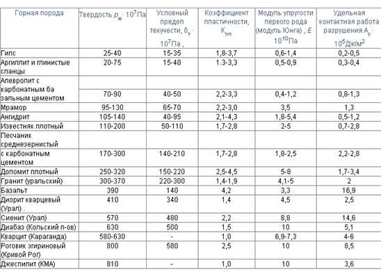 Таблица 2 – Механические свойства минеральных пород (данные Л.А. Шрейнера и др.)