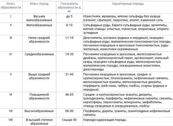 Таблица 3 – Классификация горных пород по абразивности (по Л.И. Барону и А.В. Кузнецову)