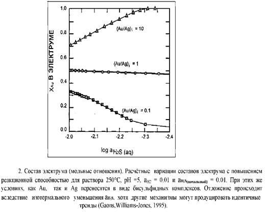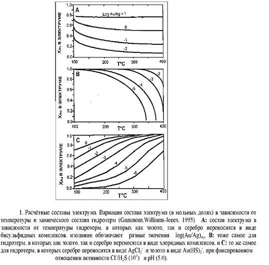 ) и хлора в рудообразующих гидротермах (Gammons, Williams-Jones, 1995). В общем, высокому содержанию золота в электруме благоприятствуют низкий рН, высокие температуры, высокие аS2