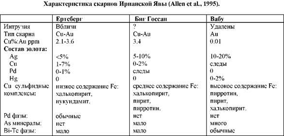 Имеются другие минералы, в которых золото является существенным компонентом (табл. 12.1), но их тренды отмечаются редко. Теллуриды золота в большинстве месторождений встречаются реже, но в некоторых, таких как Ватукоула на о.Фиджи, они являются основными рудами. Теллуриды не встречаются в порфировых месторождениях, за исключением наложений последней стадии. Сульфиды, селениды и антимониды золота очень редки.