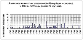 В XVIII столетии произошло 75, в XIX - 77, в XX – 138 наводнений, причем в первой половине XX столетия - 57, а во второй – 81 наводнение (рис. 1). Как видно, в XX веке частота их резко увеличилась. За семь лет нового тысячелетия уже произошло 15 наводнений.