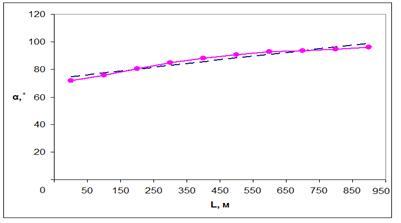 Кроме того, в Гагаринской ГРП исследовали связь между аварийностью и интенсивностью искусственного искривления отклонителями ТЗ-3. При этом были проанализированы материалы по направленному бурению 28 скважин, где было произведено более 100 циклов искривлений с различной интенсивностью локального искривления от 0,5 до 2,0 ˚/м и более. Обработку материалов производили на ЭВМ «Наири-2» по программе полиномиальной регрессии, разработанной партией «АСУ – Читагеология». При этом были получены следующие зависимости [2]: