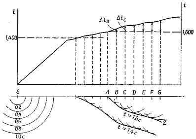 распространения волн вдоль преломляющих границ по годографам головных и слабо рефрагированных волн и по годографам рефрагированных волн с введением поправки за рефракцию;
