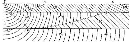 на рис. 2, представляет собой наблюдаемое время вступления преломленной волны в точку G