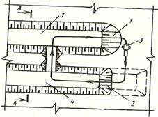 Бульдозерный отвал обычно состоит из трех участков равной длины по фронту разгрузки (рис.7.8). На первом участке ведется разгрузка, на втором - планировочные работы, третий участок - резервный. По мере развития горных пород назначение участков меняется.