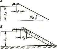 - положение отвального откоса перед разгрузкой локомотивосостава; б -