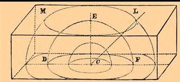 Рис. 2 − С – центр землетрясения, Е – эпицентр, D, E, F – сейсмическая волна под поверхностью, М, L – область распространения сейсмической волны на поверхности.