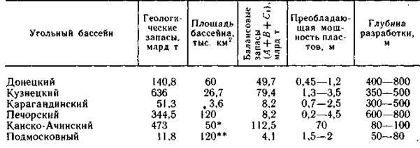 Краткая характеристика основных угольных бассейнов приведена в табл.1.