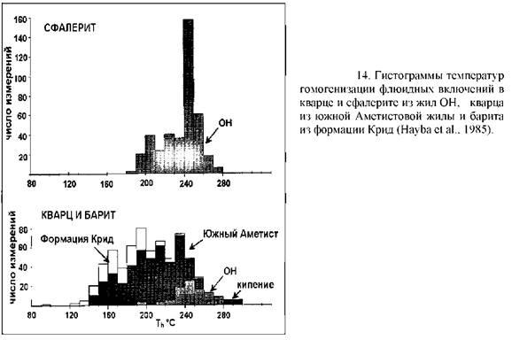 Хотя такие данные ещё можно использовать, но необходимо ввести ограничения. По-видимому, более правильные температуры образования минералов соответствуют самым низким обычным показаниям, но не отдельным значениям. Эту ситуацию можно расшифровать, если имеются большие интервалы отношений жидкости и пара в, примерно, одинаковых на первый взгляд включениях и большие пределы колебаний температур гомогенизации. Возможно, имеются иные минералогические индикаторы кипения, такие, например, как присутствие плоских кристаллов кальцита.