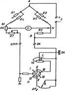 Три плеча моста имеют постоянное сопротивление и установлен! на поверхности в панели управления. Сопротивления и включаются при измерении углов, сопротивления и – при измерении азимута; – общее сопротивление моста. Четвертое плечо слагается из сопротивления жилы кабеля, переменного сопротивление , предназначенного для компенсации изменения сопротивление жилы кабеля, и сопротивлений реохорда угла наклона или магнитной буссоли .