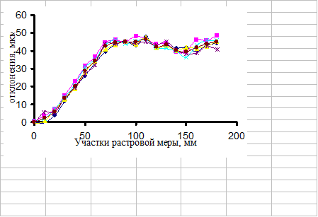 ) показаны результаты исследования на одном из участков рейки, выбор именно этих участков обусловлен наибольшей величиной погрешности.