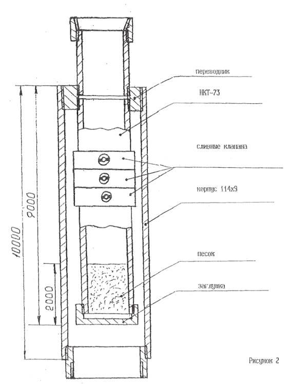 Принцип работы депрессионных устройств заключается в создании депрессии на объект воздействия путем создания большого перепада давления в районе ПЗП скважины. Это достигается спуском пустых труб, открытием депрессионного устройства и заполнением груб под действием пластового давления или давления гидростатического столба жидкости.