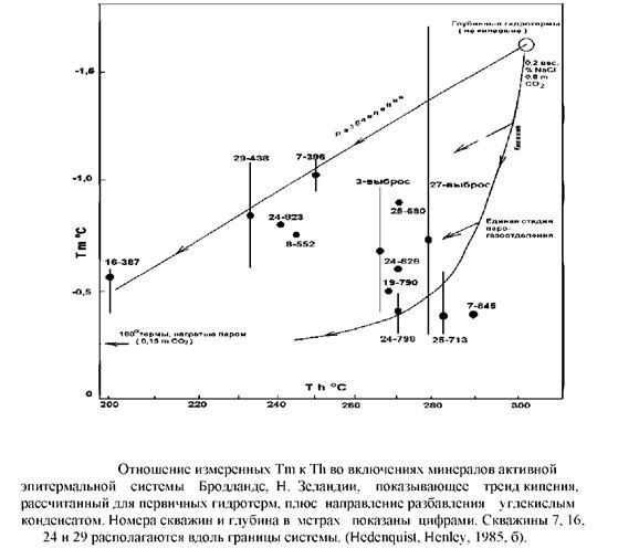 +++ Взято из Хеденквиста и Хейли (1985, б); большинство данных из систем Куроко имеют различную минерализацию, что не может быть объяснимо только кипением морской воды или участием СО2