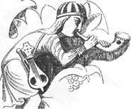 Мисливські ріжки відрізнялися від тих, що були у менестрелів. Останні використовували інструмент більш сучасної конструкції. Рис. 3.7 Дірочка на них були не лише уздовж дуди, але й на раструбі, що дозволяло модулювати звук, надаючи йому більшу або меншу гучність.