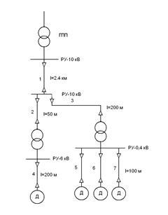 У завдання говориться, що завод є споживачем першої категорії. Із цього треба, що харчування буде виробляється по двох лініях електропередач, від ГПП, де встановлені два трансформатори, економічно доцільно використовувати кабельні лінії прокладені в землі, тому що відстань від ГПП К розподільної підстанції менше 10 кілометрів. Кожний трансформатор підключений К окремої лінії, це пов'язане з тим, що при аварії на першій лінії робота буде продовжаться, тому що друга візьме на себе все навантаження.