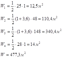 Площадь сечения между вертикалями wi
