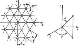 Где kl=d/2–половина расстояния между излучателями,hl=d*Ö3/2– расстояние между строками.