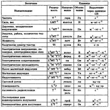 — это единица производной ФВ системы единиц, образованная в соответствии с уравнениями, связывающими ее с основными единицами или же с основными и уже определенными производными. Производные единицы системы СИ, имеющие собственное название, приведены в табл. 2