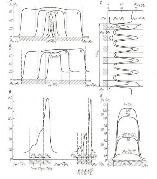 При расчете палетки исходили из условий, что зонд БК расположен против середины пласта, рвм