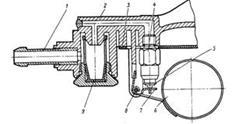 Заключительная операция - проверка направленности струй топлива из распылителя; при необходимости осторожно подгибают трубки, чтобы топливо в период нагнетания подавалось в зазор между стенками малого и большого диффузоров, как в первичной, так и во вторичной камерах, не попадая на их поверхности,