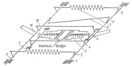 8 – рычаги; 9 – поднимающие рычаги; 10 – опускающие тяги; 11 – нижние рамы