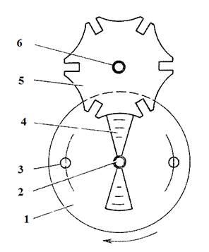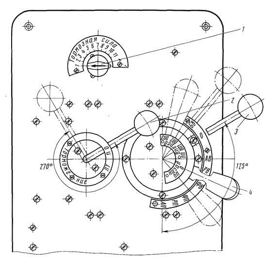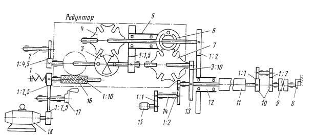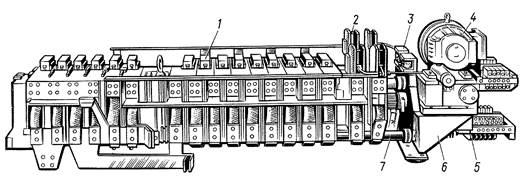 5 – промежуточные валы; 6 – синхронизирующая тяга; 7 – поднимающие пружины;