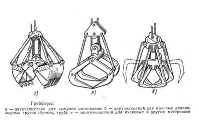 Они служат для соединения поднимаемых грузов с гибкими грузовыми органами и в зависимости от того, с какими грузами работают, они подразделяются на: универсальные - крюки, петли, которые работают с любыми навесными устройствами; специальные, которые работают с определенными категориями грузов, например, бадьи и грейферы работают только с сыпучими грузами. При использовании специальных захватов значительно повышается производительность крана.