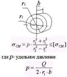 Внутренние поверхности проушин рассчитываются на смятие по формуле Ламе (Lame).