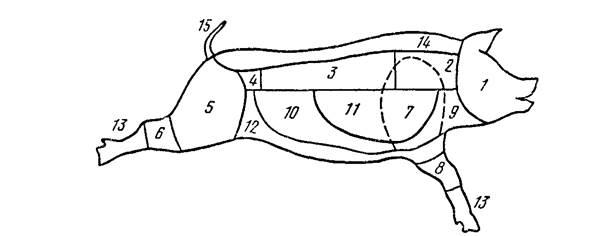 Рис. 4. Разделка свиной туши:
