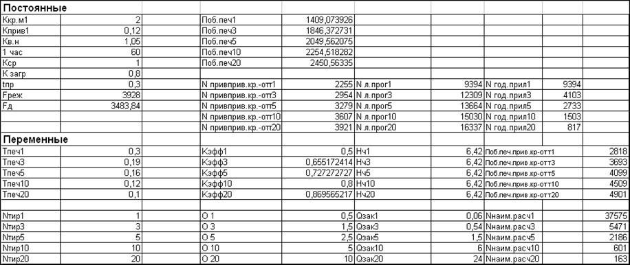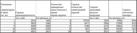 2.1. Расчет годовой производительности печатного оборудования при среднегодовых тиражах изданий, равных 1, 3, 5, 10, 20 тыс. экз. 9