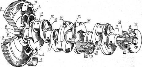 - шкив; 22 - канал подвода масла в полость шатунной шейки; 23