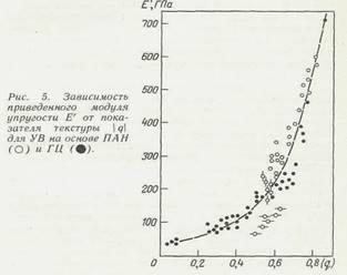 Высокие степени вытягивания в различных средах повышают ориентацию и прочность ПАН волокон, что благоприятно сказывается на механических свойствах УВ. Действительно, по мере увеличения прочности ПАН волокна заметно возрастают прочность и модуль Юнга УВ. Аналогичная закономерность установлена в ряде других работ Особенно существенное значение имеет ориентация ПАН волокна, так как организованные надмолекулярные образования служат матрицей при формировании структуры углерода и обусловливают механические свойства УВ. Однако вытягивание ПАН волокна не должно превышать оптимальных значений, выше которых начинают возрастать дефекты ПАН волокна, дефекты обычно переходят на УВ и снижают его прочность. Необходимость применения высокопрочных ПАН волокон не является бесспорной.