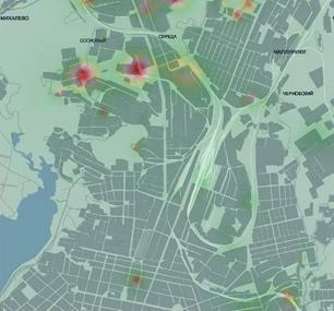 2)Проведение сводных расчетов полей приземных концентраций загрязняющих веществ с выявлением вкладов предприятий и автотранспорта в загрязнение атмосферы;