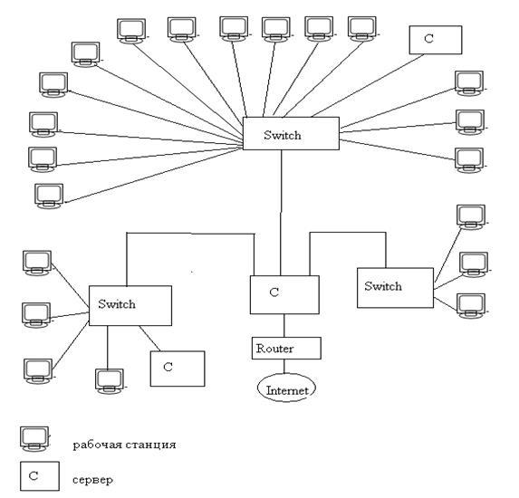 Рис.2 Схема расположения компьютеров в офисе турфирмы.