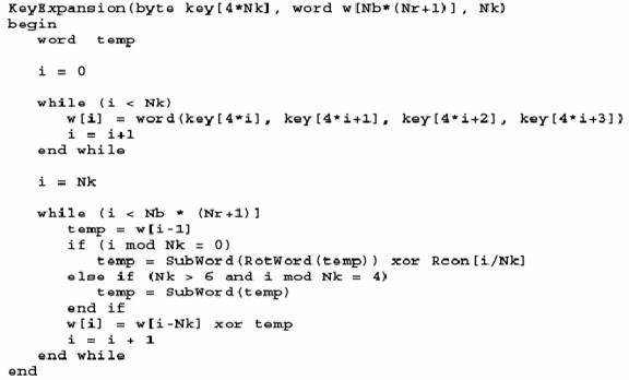 Ключ шифрования также как и массив State представляется в виде прямоугольного массива с четырьмя строками. Число столбцов этого массива равно Nk.