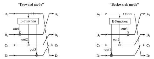 Рис 2.2 Структура функции зашифрования и расшифрования алгоритма MARS