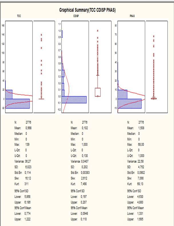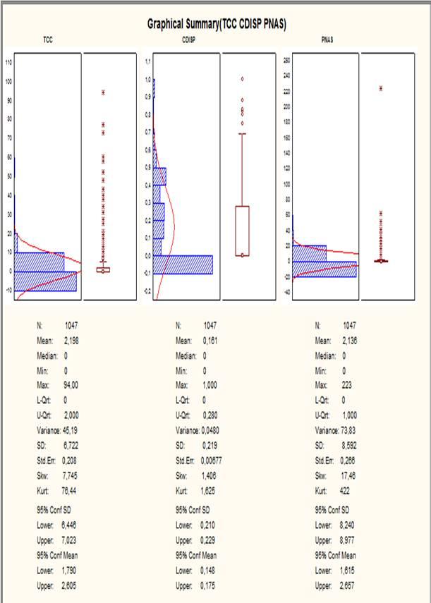 Мал.4. Проведений статичний аналіз за допомогою Statistica для метрик TCC, CDISP та PNAS