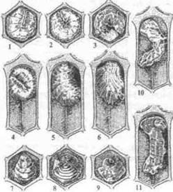 10 и 11 — корочки погибших личинок.
