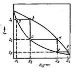 конденсация которого дает жидкость с еще большим содержанием низкокипящего компонента, имеющую состав ха